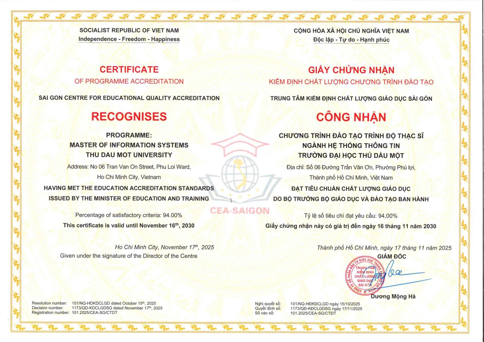 25. Chương trình Thạc sĩ Hệ thông thông tin